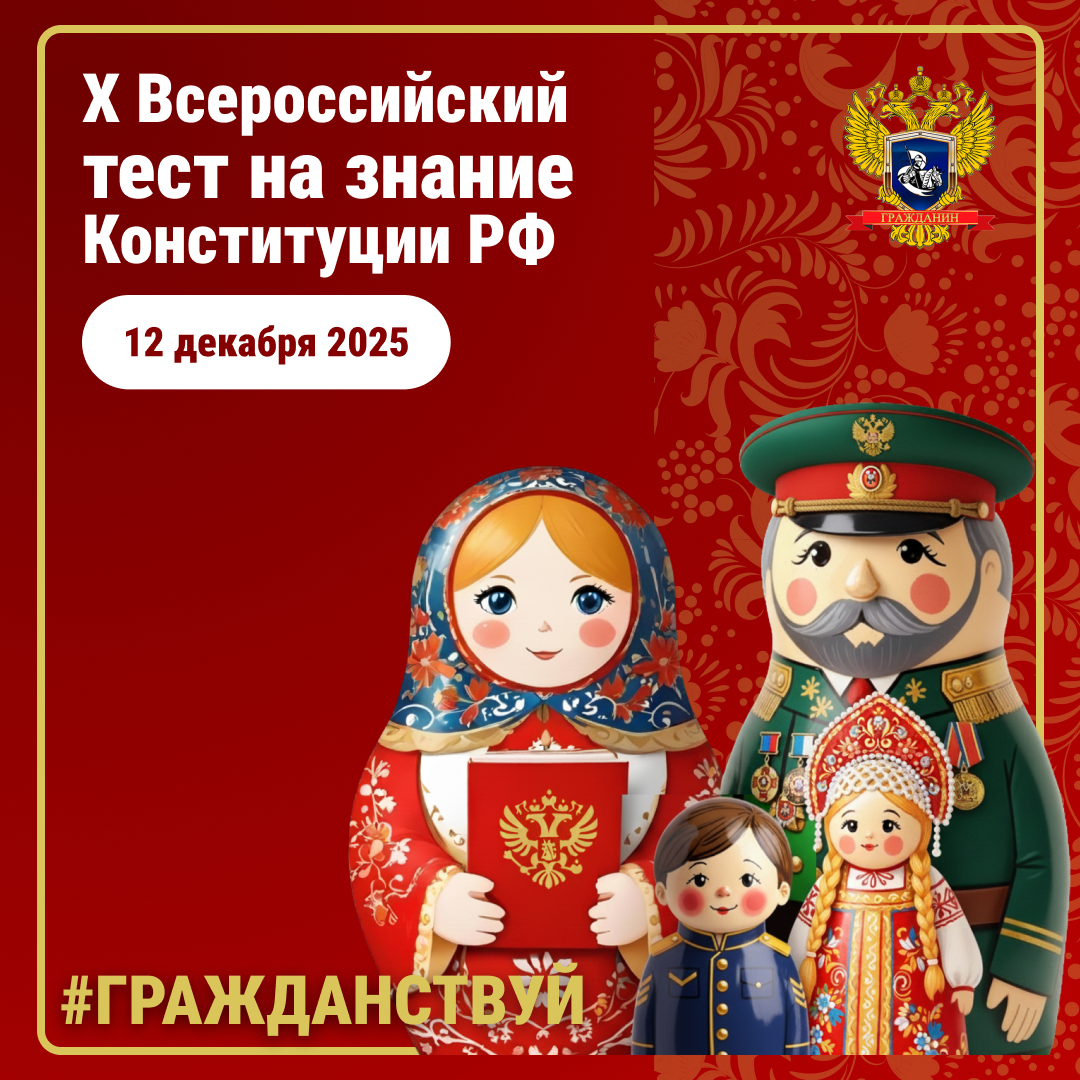 Юбилейный X Всероссийский тест на знание Конституции РФ пройдут миллион участников по всей России и за рубежом на платформе гражданин.дети