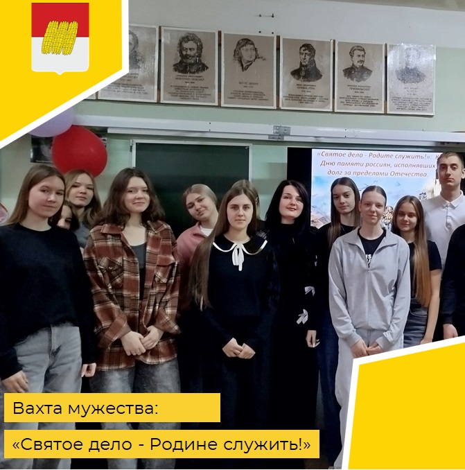 К  Дню памяти россиян, исполнявших долг за пределами Отечества. Отдавая дань уважения тем,  кто проявил высочайшую силу духа, самоотверженность, героизм, выполняя боевой долг, библиотекарь Городской  библиотеки   провела  мероприятие, с использованием Пушкинской карты, для учащихся  11 «А»  класса  Дорогобужской школы №2, посвящённое этой памятной дате.
