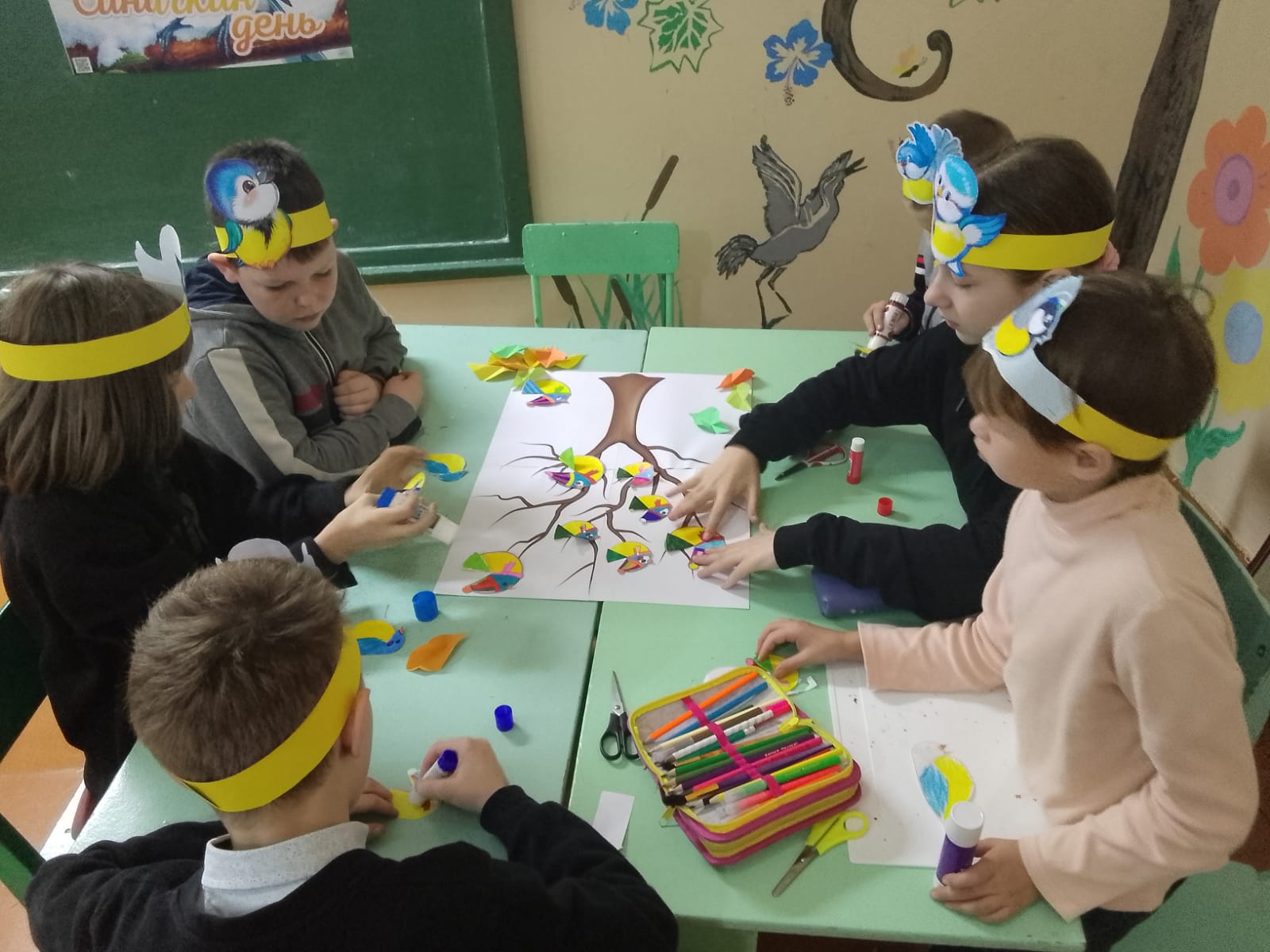 В завершении мероприятия дети нарисовали птиц, остающихся зимовать рядом с человеком, и сделали с ними головные уборы.