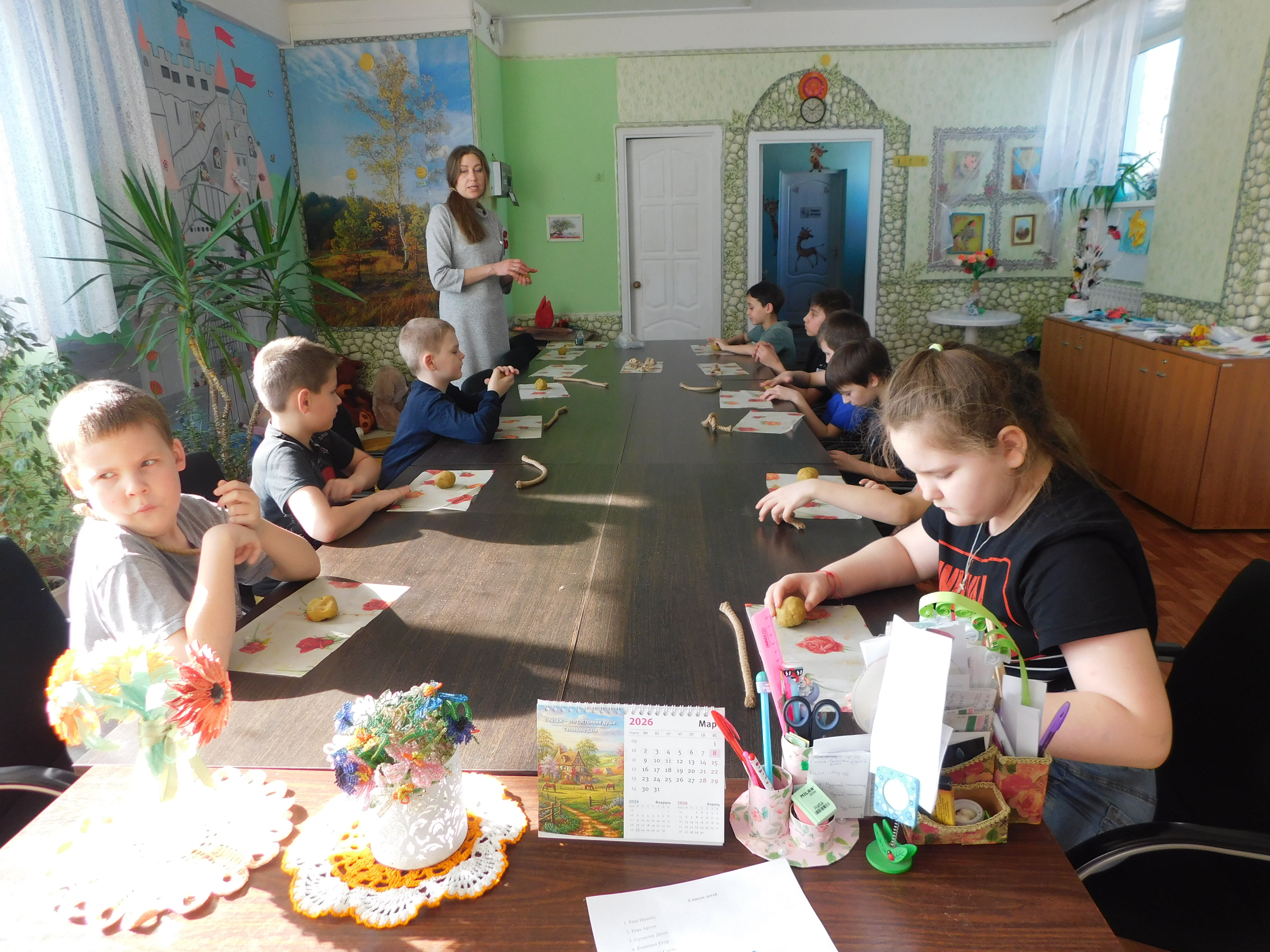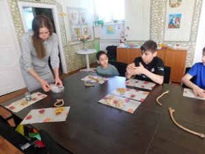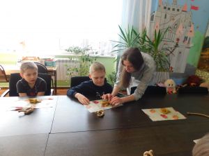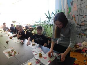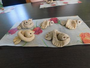 Ольга Минченкова известна в Дорогобужском округе, как мастер народных ремесел: ткет, вяжет, шьет, вышивает, занимается лепкой. Вот и сегодня детям она принесла крутое, соленое тесто, из которого лепили птичек - «жаворонков». С интересом, с хорошим настроением отнеслись детишки к лепке птичек.