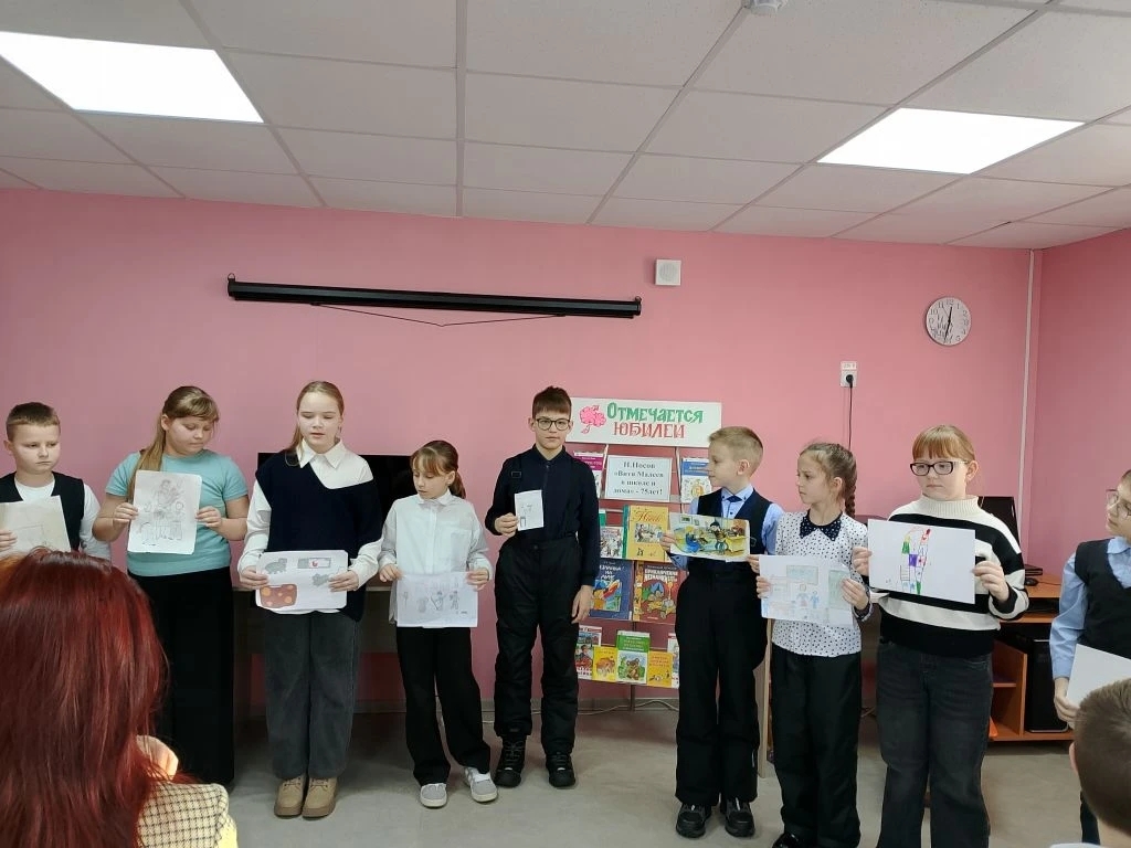 Библиотекарь прочитала отрывок из повести, рассказала основной сюжет об удивительных событиях в жизни друзей четвероклассников, их переживаниях и радостях, ошибках и достижениях, а также посмотрели отрывок из кинофильма «Витя Малеев в школе и дома».