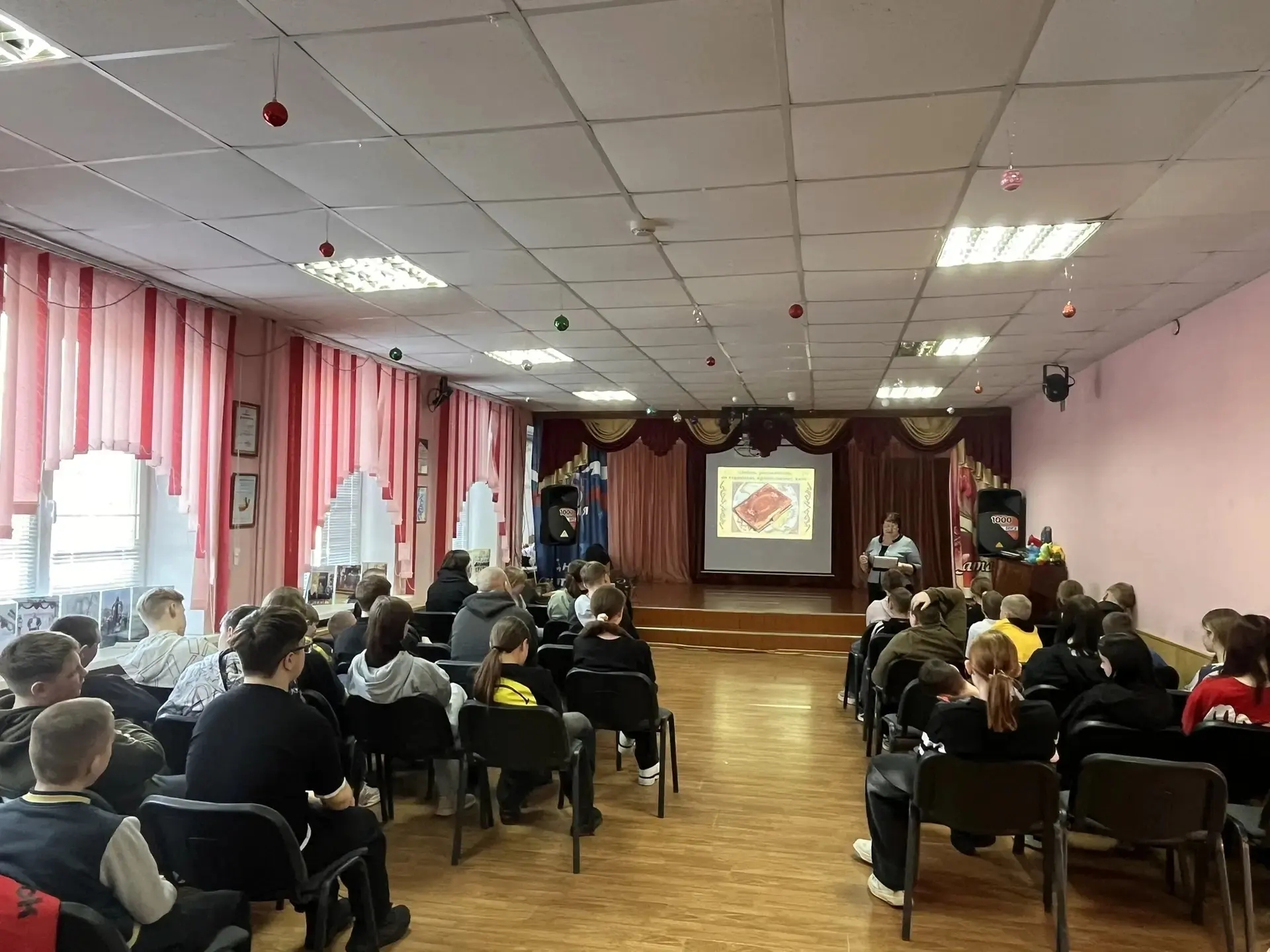 С помощью презентации библиотекарь рассказала об истории этой памятной даты, связанной с изданием первой печатной книги «Апостол», о том, что первые славянские книги были рукописными, и их изготовление было делом дорогим и трудоемким. Книги ценились на Руси, собирались в семьях несколькими поколениями, упоминались в каждой духовной грамоте среди ценностей и родовых икон.