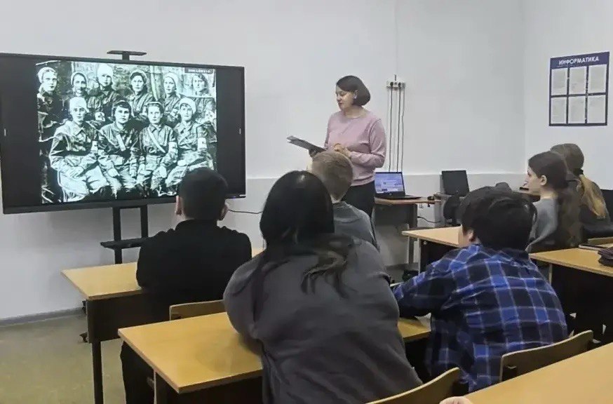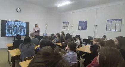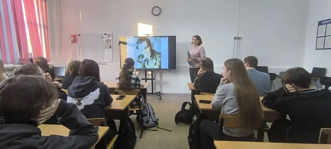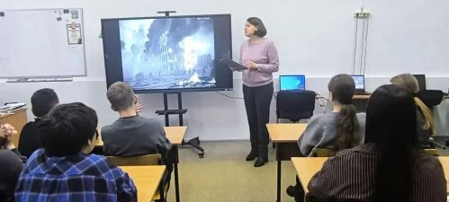 Библиотекарь рассказала школьникам о хронологии событий Сталинградской битвы, об ожесточённых боях, о героизме советских солдат, о значении города на Волге для нашей страны, о тяжелом положении мирных жителей, об обугленной пожарищами и обильно политой кровью земле Сталинграда.