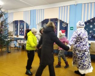 После коляды на территории, все были приглашены в помещение СДК к новогодней ёлке. Там с присутствующими были проведены различные конкурсы на лучшее исполнение рождественских напевов, лучшую колядку, лучший танец Ряженого. Затем был проведён конкурс на лучший рождественский наряд.