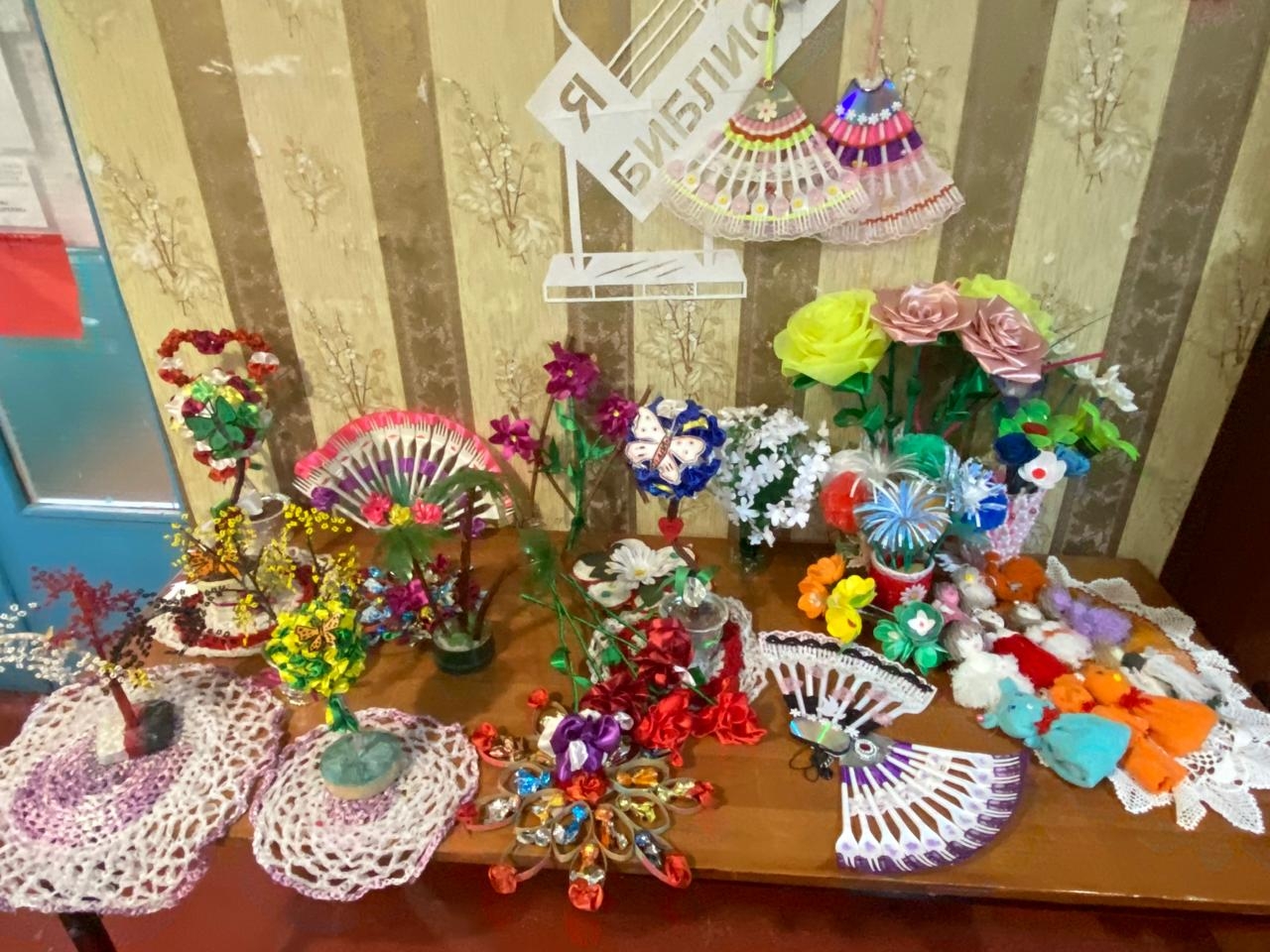 Библиотека в этот день напоминала выставочный зал. Здесь были представлены работы усвятских умелиц и рукодельниц КЗВ. Это разнообразные изделия: вязаные вещи, игрушки, украшения, расписные ложки, матрешки, композиции из бисера, поделки из подручных материалов, ленточное шитье, декупаж, пэчворк, все просто трудно перечислить.