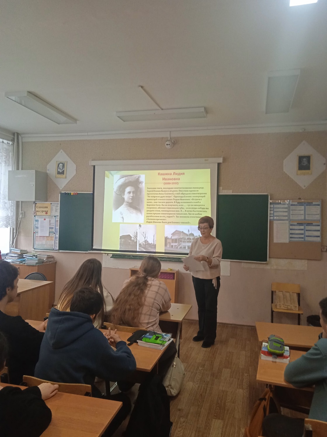 Библиотекарь прочитала стихи поэта «Худощавый и низкорослый», «Низкий дом с голубыми ставнями», «Край любимый», «Вот оно глупое счастье», «Разбуди меня завтра рано», «Видно так заведено навеки» и др.