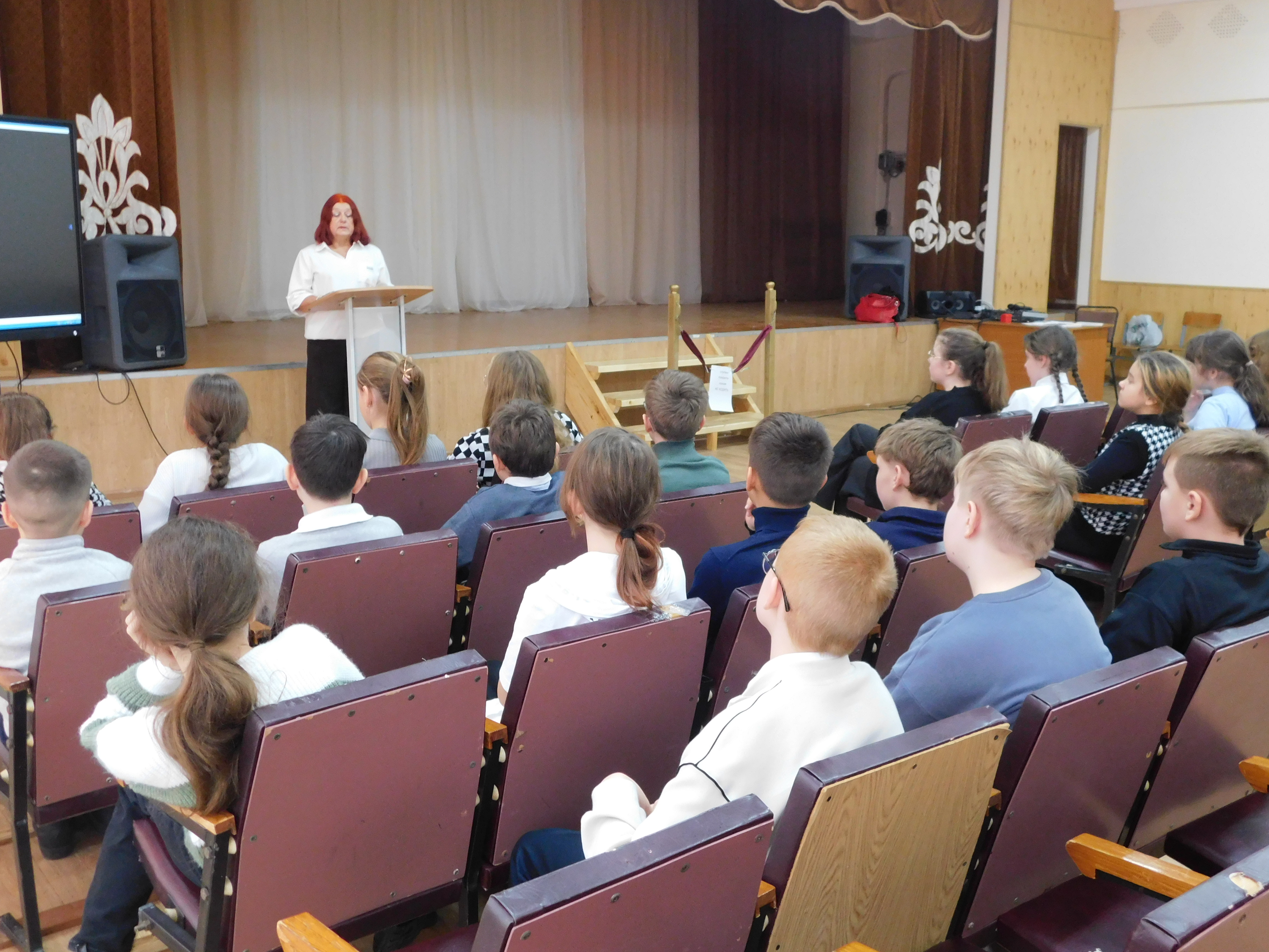 Зоя Петрова рассказала ученикам, как многие погибшие стали неизвестными солдатами. Они навечно остались лежать в Братских могилах. На братских мемориалах написано: «Имя твое неизвестно, подвиг твой бессмертен». Она рассказала о Могиле Неизвестного солдата в Александровском саду у Кремлевской стены, о стеле – памятнике Победы на Поклонной горе, об интересных фактах на эту тему, о поисковой работе по воинам Великой Отечественной войны в Дорогобужском районе, руководителем которой является Сергей Иванович Голубков.