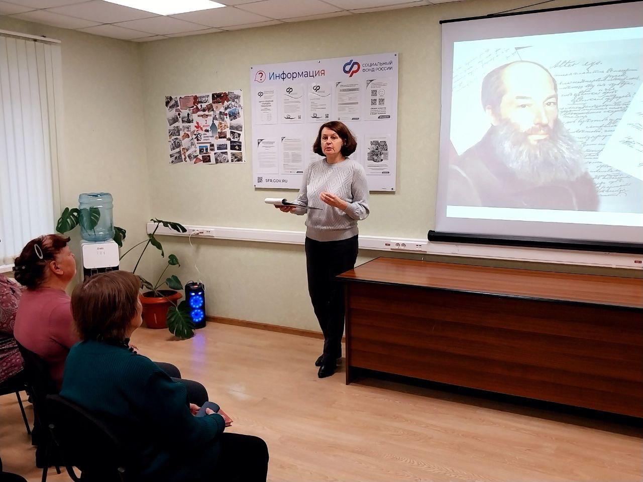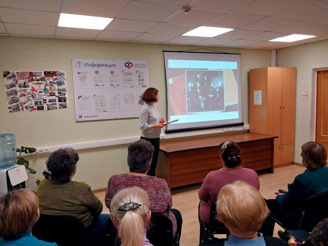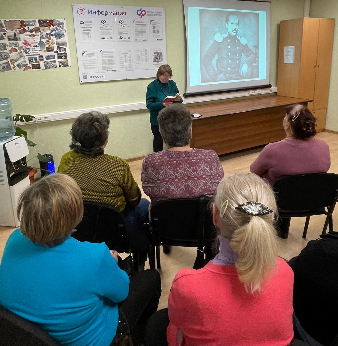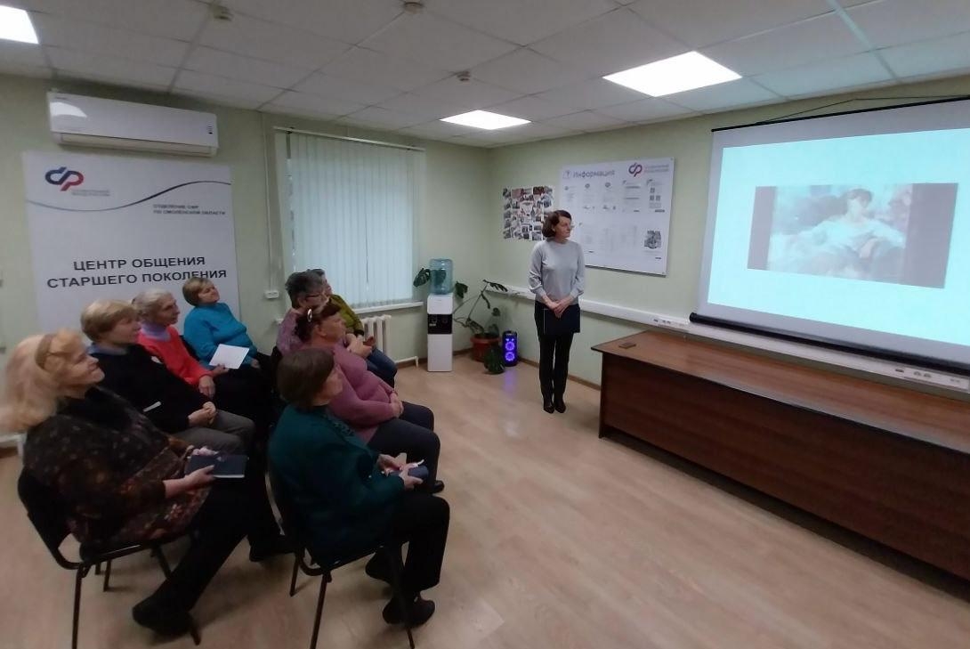 9 декабря сотрудник Центральной библиотеки для жителей г. Дорогобужа, посещающих Центр общения старшего поколения в Клиентской службе СФР в Дорогобужском районе, провела литературную встречу – портрет «Жизнь моя – самый сложный роман», посвященную юбилею поэта.