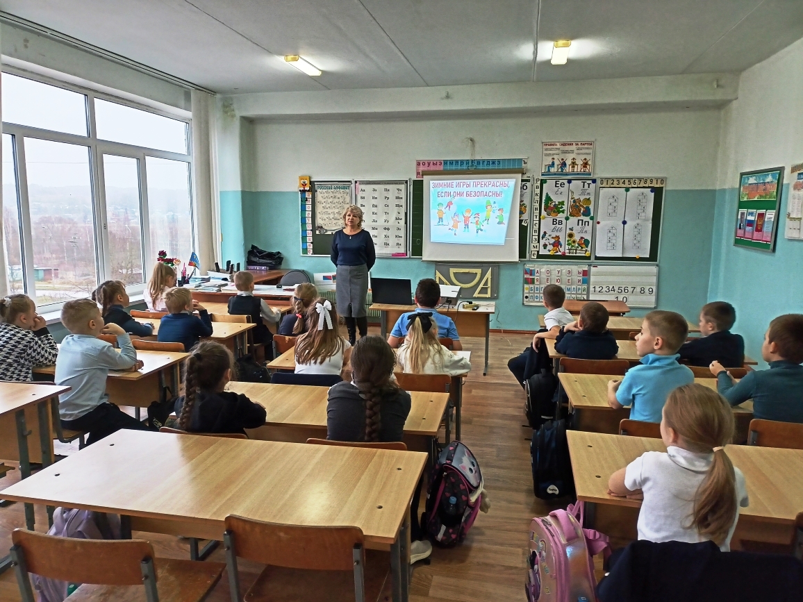 Для учащихся 1 «б» класса Дорогобужской школы №2 библиотекарь Городской библиотеки подготовила и провела беседу-информацию «Зимние игры прекрасны, если они безопасны».
