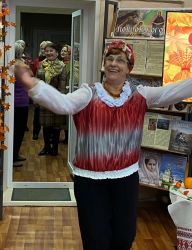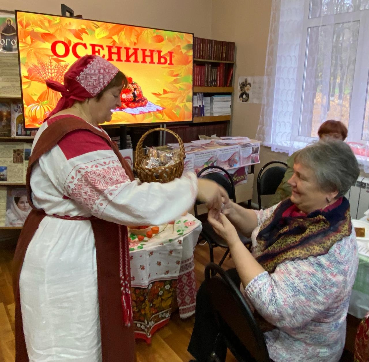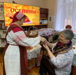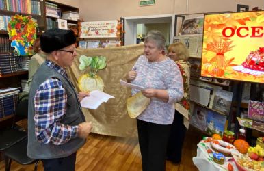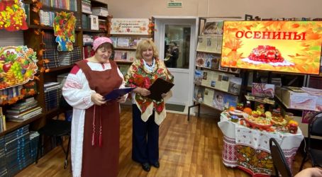 Библиотекари говорили о народных осенних традициях и обрядах, о том, как в старину было принято устраивать осенние капустники, вспоминали народные приметы. Самодеятельные артисты из клуба «Золотой возраст» представили минисценку «Про репку».
