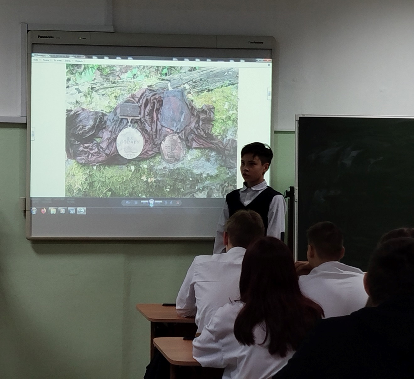 В начале мероприятия библиотекарь познакомила ребят с историей возникновения этой памятной даты,с помощью, подготовленных видеоматериалов, вспоминали безымянных героев, защитников Отечества, погибших в годы Великой Отечественной войны, известных под именем «Неизвестный солдат». На мероприятии звучали песни в исполнении В. Высоцкого «На братских могилах», Я. Сумишевского «Облаком по небу». Школьники прочли стихи Ю. Коринца «Неизвестный солдат», Сергея Орлова «Его зарыли в шар земной…» и С. Кадашникова «Ветер войны». Лишь немногим героям удается вернуть имена, остальные так и остаются «неизвестными солдатами».Татьяна Антоновна Московченко рассказала ребятам о поисковых мероприятиях, которые ведутся на территории Дорогобужского района. Ребята с интересом посмотрели отрывок из фильма о поисковиках Смоленской области.