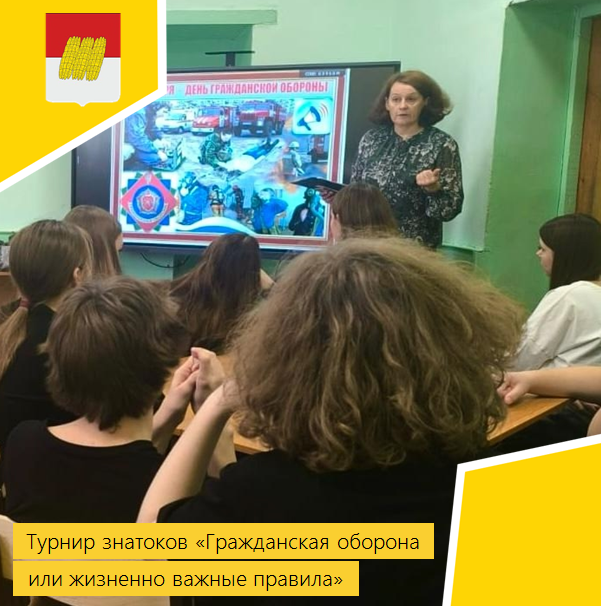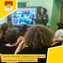 В рамках месячника гражданской обороны, 15 октября библиотекарь Центральной библиотеки совместно с Верхнеднепровской школой №1 для учащихся провела турнир знатоков «Гражданская оборона или жизненно важные правила». Основная цель которого - повышение осведомлённости школьников о правилах поведения в чрезвычайных ситуациях и формирование навыков безопасного поведения.