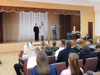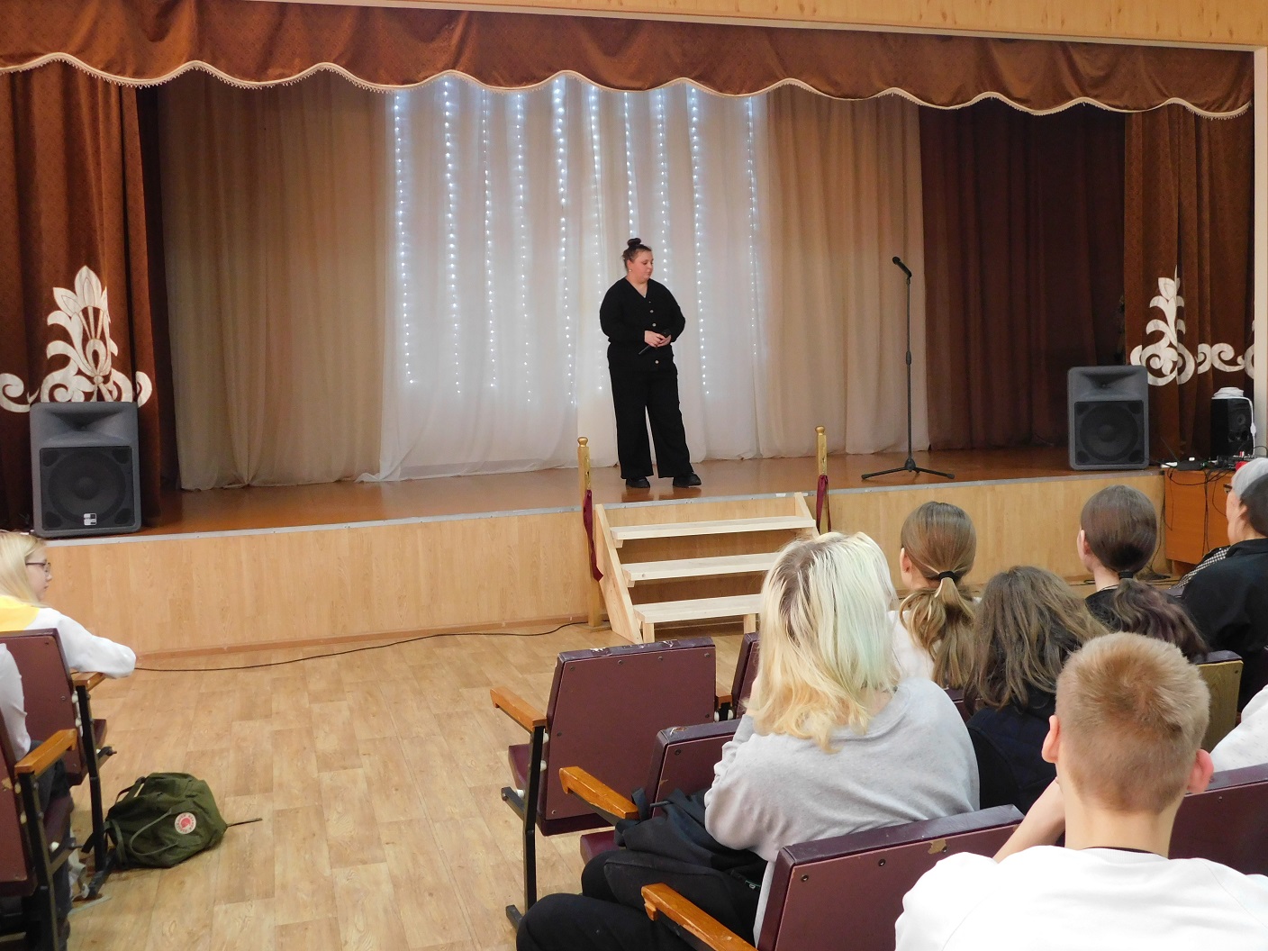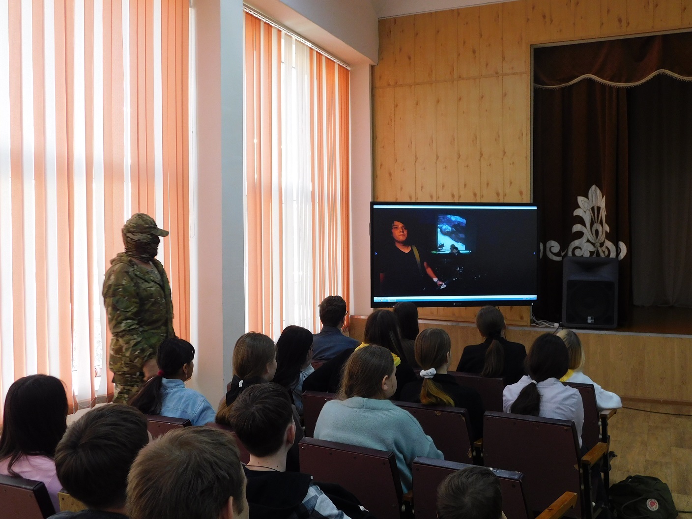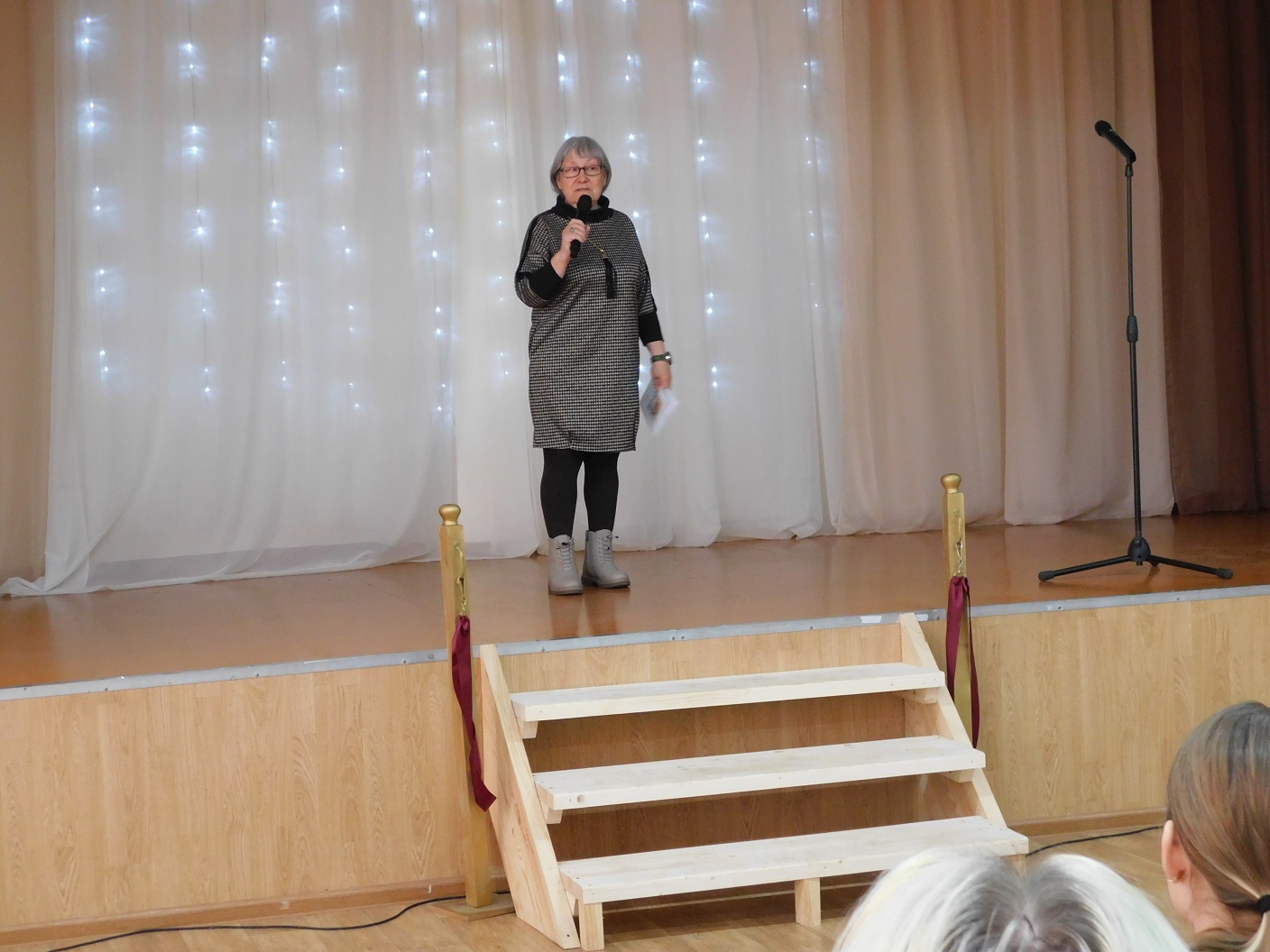 Член Союза журналистов РФ, поэт, прозаик Роза Гречанова прочитала ученикам свои стихи: «Моя великая Россия!», «Настоящий герой». Солист, поэт, музыкант Михаил Купоров и солистка образцового коллектива вокальной студии Ольга Минченкова выступили с музыкальными композициями: «Разведка» (автор – участник СВО), и «Русь». В исполнении Е. Рыбчинской прозвучала песня «С чего начинается Родина?».