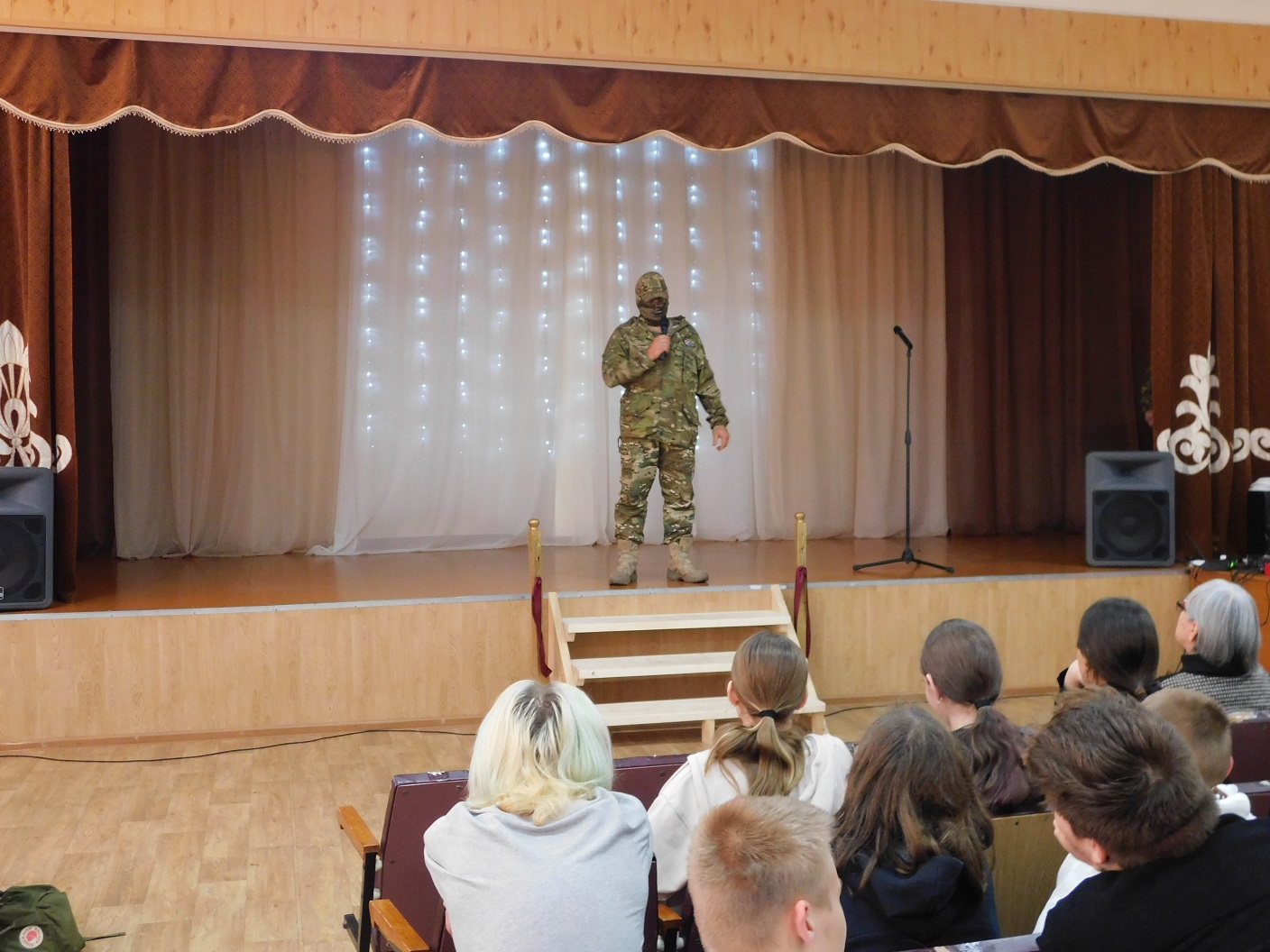 Перед учащимися школы выступила мама участника СВО Е.Л. Рыбчинская, которая рассказала о своих переживаниях, тревоге за сына, который находился на линии огня.