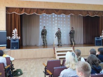 Руководитель военно-спортивного клуба «ВДВ» Алексей Шевелюхин рассказал ученикам о своих воспитанниках, которые сегодня принимают участие в СВО. И сам он неоднократно был на передовой с гуманитарной помощью для воинов. Воспитанники клуба выступили с показательными выступлениями.
