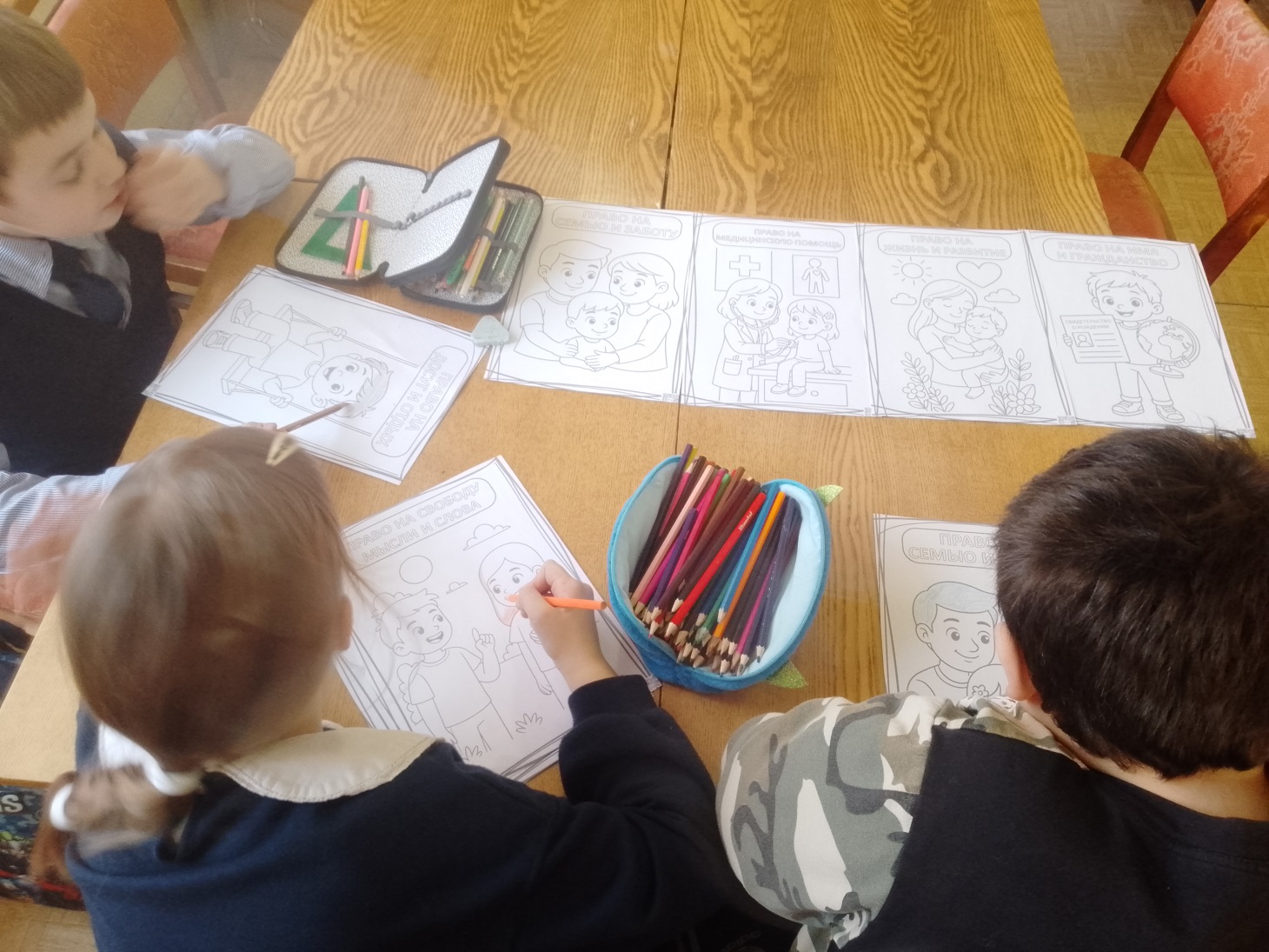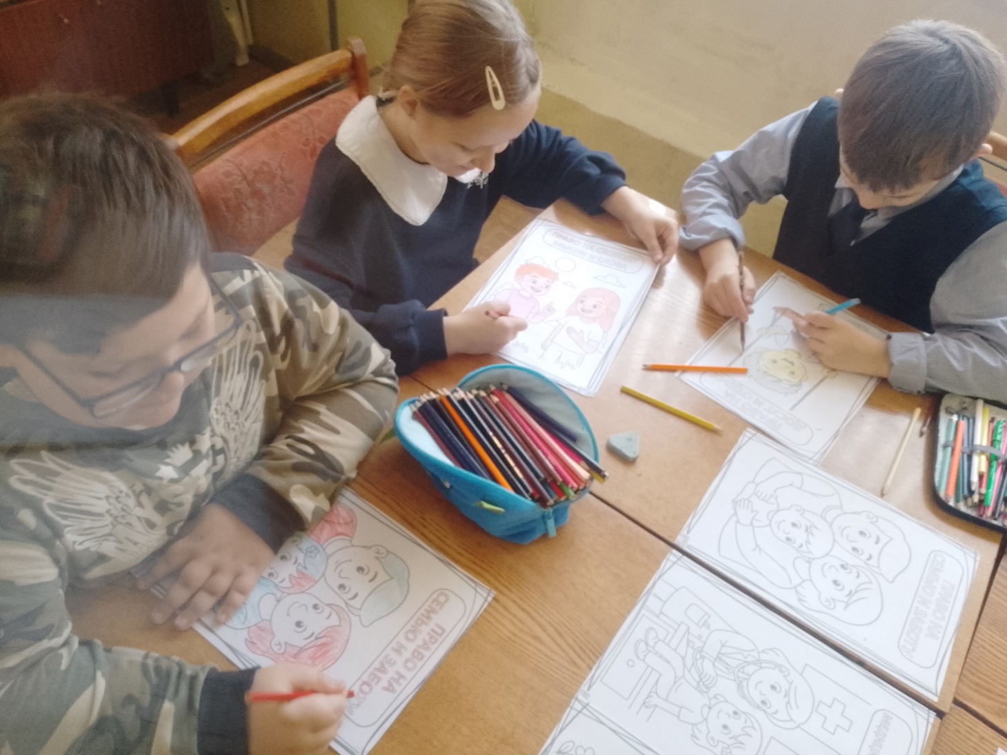 По завершении путешествия в страну «Правознайка» ребята разукрасили рисунки со своими правами.